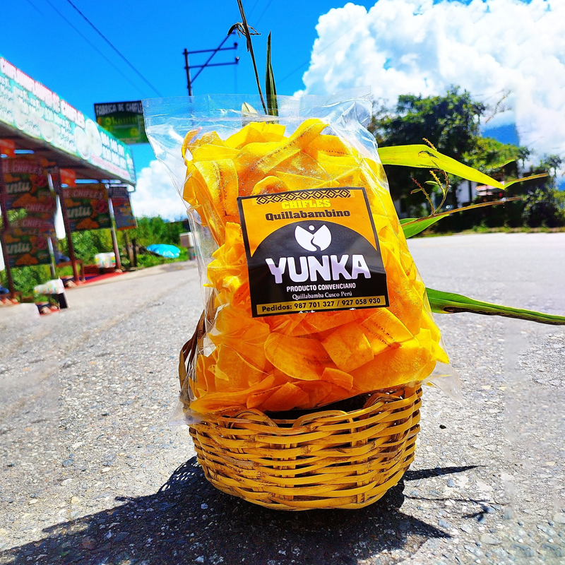 La historia de YUNKA nace del esfuerzo, la creatividad y el profundo amor por su tierra. A lo largo de los años, sus fundadores impulsaron diversos proyectos, y uno de los más importantes fue en el rubro del turismo. En el Centro Poblado de Amaybamba, distrito de Huayopata, recibían con entusiasmo a visitantes de distintas partes del país y del mundo, compartiendo con ellos la belleza natural y cultural de su tierra. Sin embargo, con la llegada de la pandemia, todo cambió. El turismo se detuvo por completo y, con él, su principal fuente de ingresos.En medio de esa crisis, surgió una nueva idea. Aprovechando un racimo de plátano, comenzaron a experimentar con la elaboración de chifles. Era la primera vez que lo hacían, y todo inició de forma muy sencilla: en una pequeña olla, en la cocina de casa. A través de pruebas y errores, fueron perfeccionando la técnica y el sabor. Lo que empezó como una alternativa temporal, pronto se convirtió en una nueva pasión.